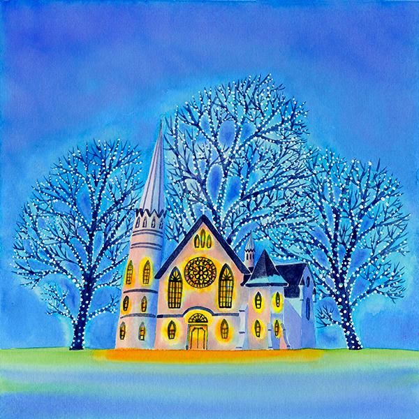 教会の灯りがあたたかく輝く