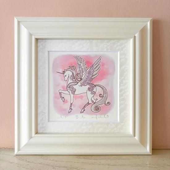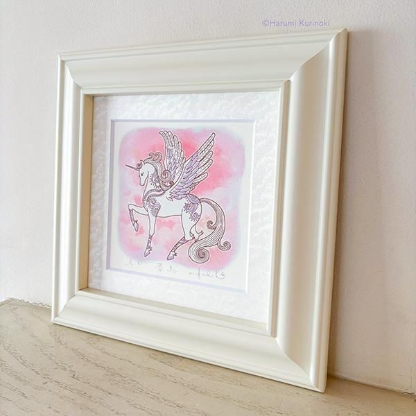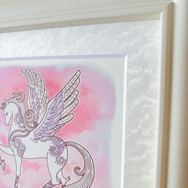 また、絵を縁取るマットは、空に浮かぶ雲を想わせる繊細な模様入りで、